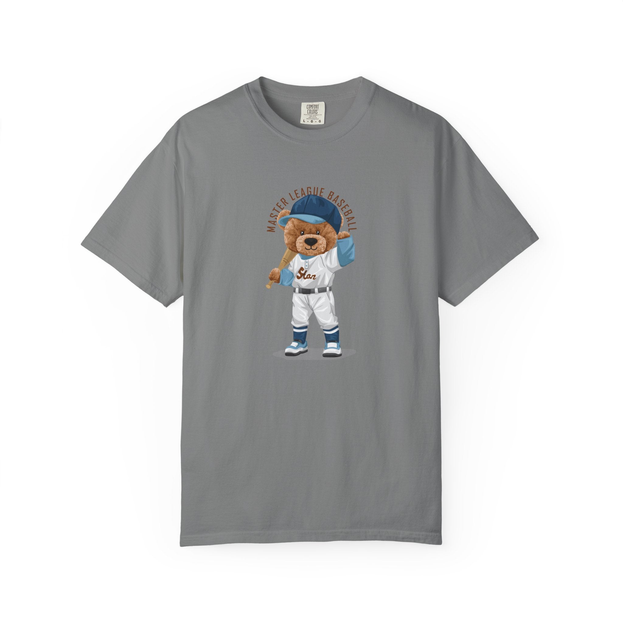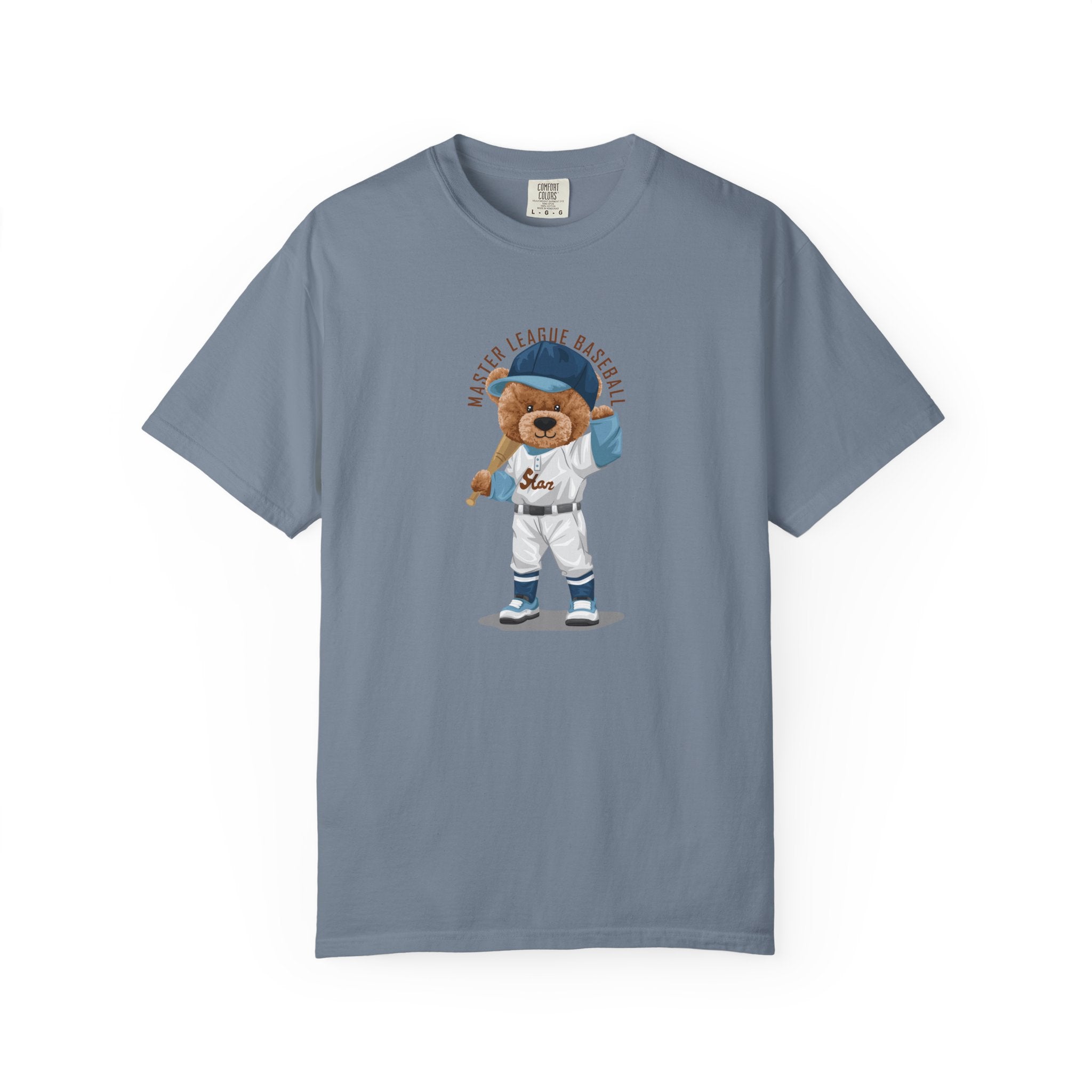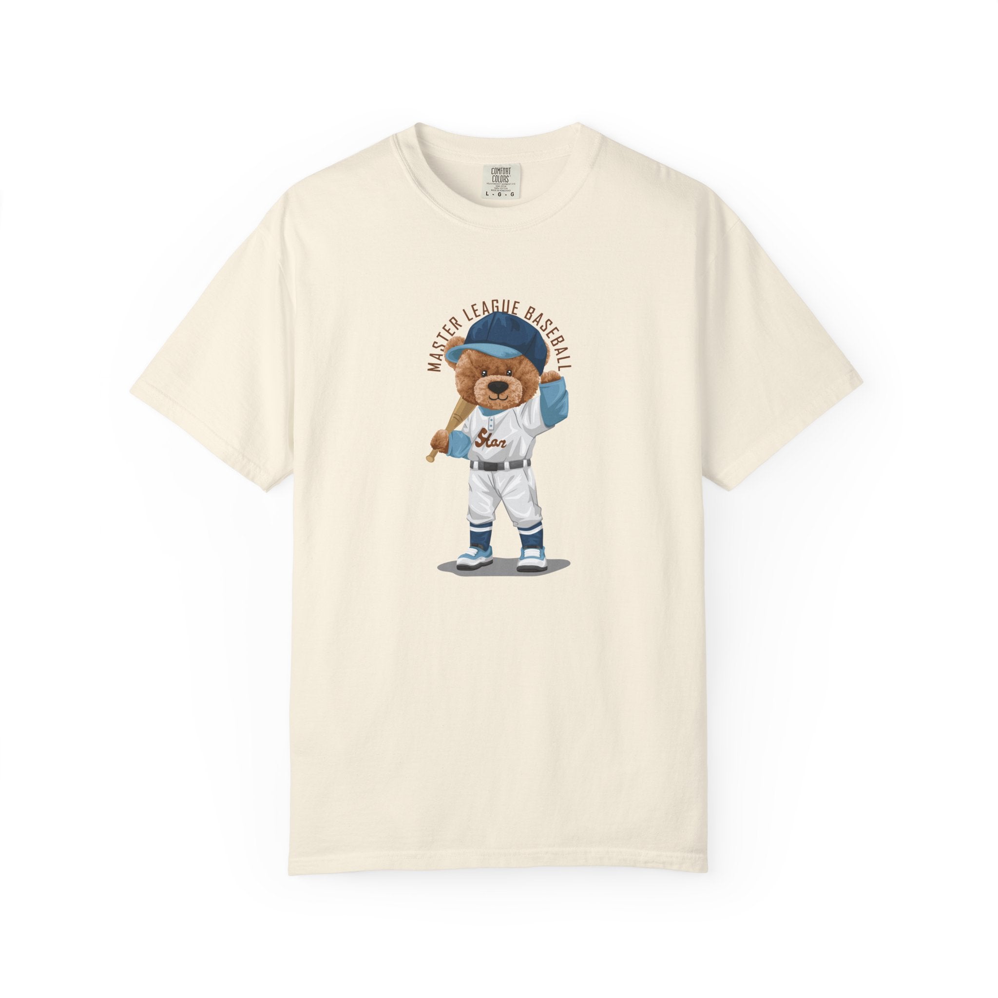 This relaxed-fit cotton tee brings a playful, nostalgic energy to everyday wear. The garment-dyed fabric has a lived-in softness and subtle depth of color that grows more comfortable with every wash. Front artwork features a charming bear in a vintage baseball uniform — the kind of small, character-driven detail that sparks conversations at the park, the ballgame, or coffee runs. Thoughtful construction (tubular knit, double-needle seams, pre-shrunk ring-spun cotton) keeps the shirt holding its shape while staying soft against the skin. Choose from a wide palette of colors and sizes to match your look and lifetime of adventures.