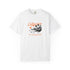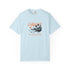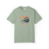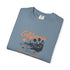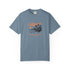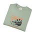 Soft, sun-washed comfort with a laid-back California vibe. This garment-dyed tee carries a vintage surf postcard on the chest—muted orange script, a low-slung sun, and a silhouetted shoreline—so it looks lived-in from the first wear. The relaxed fit and medium-weight 100% ring-spun cotton drape easily over boardshorts or jeans, while double-needle stitching and tubular construction keep it durable and clean-lined. Wear it on slow mornings at the beach, on evening bonfires, or when you want a subtle nod to coastal days without shouting for attention.