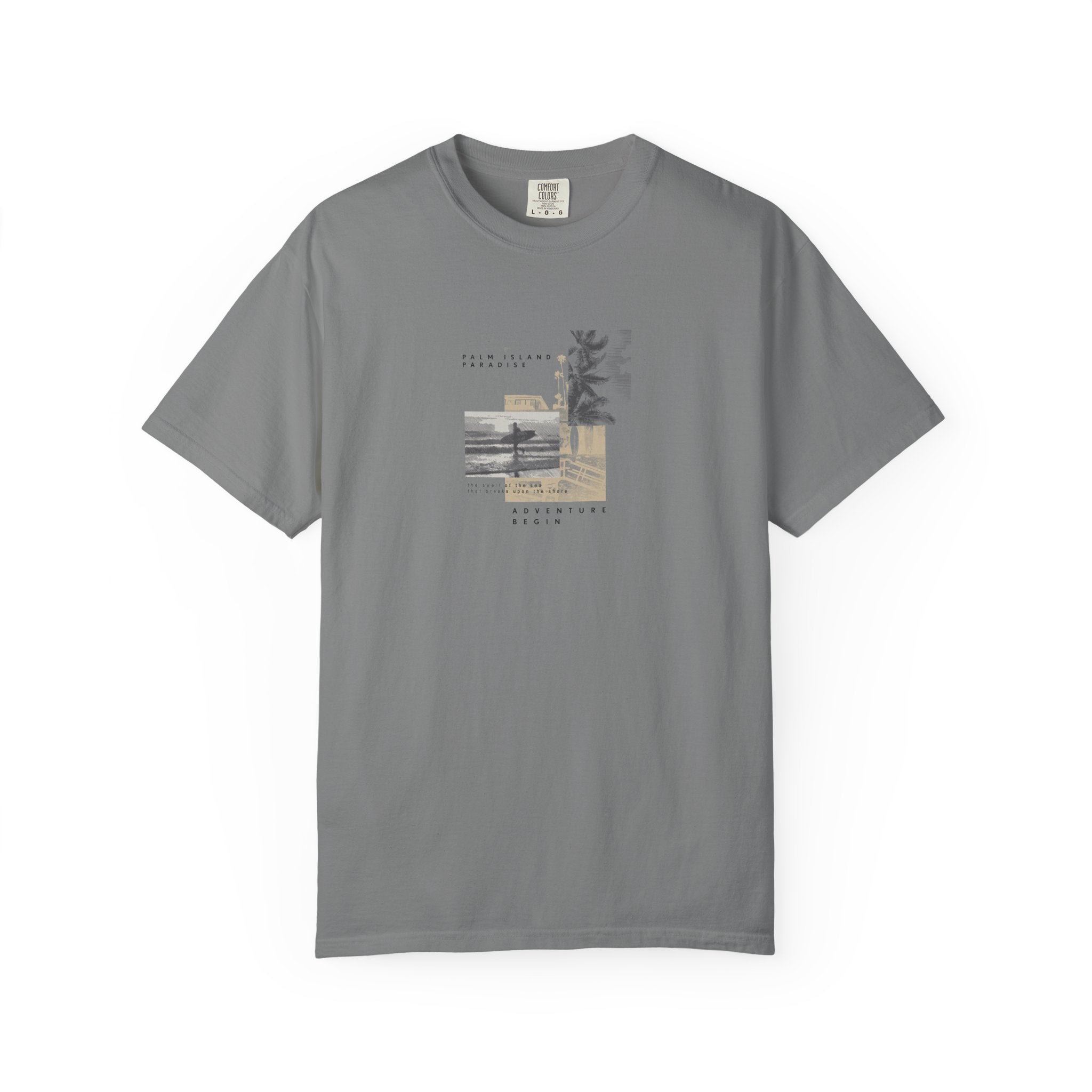 Crafted to be durable and comfortable, the shirt invites daily use while keeping the art feeling personal. Let the soft, garment-dyed color and thoughtful collage be the quiet accent in your wardrobe during coastal escapes, low-key gatherings, and long walks where you notice the small things.
