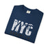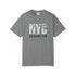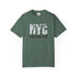 This relaxed-fit tee carries an urban, worn-in vibe — garment-dyed for a soft, lived-in color and printed with a distressed “NYC” block and the word BROOKLYN beneath it. The midweight cotton drapes comfortably over layers or stands alone on warm days. Wear it to stroll brownstone streets, ride the subway at dusk, or meet friends for coffee; the subdued tone and weathered print blend into city rhythms while still making a quiet statement.