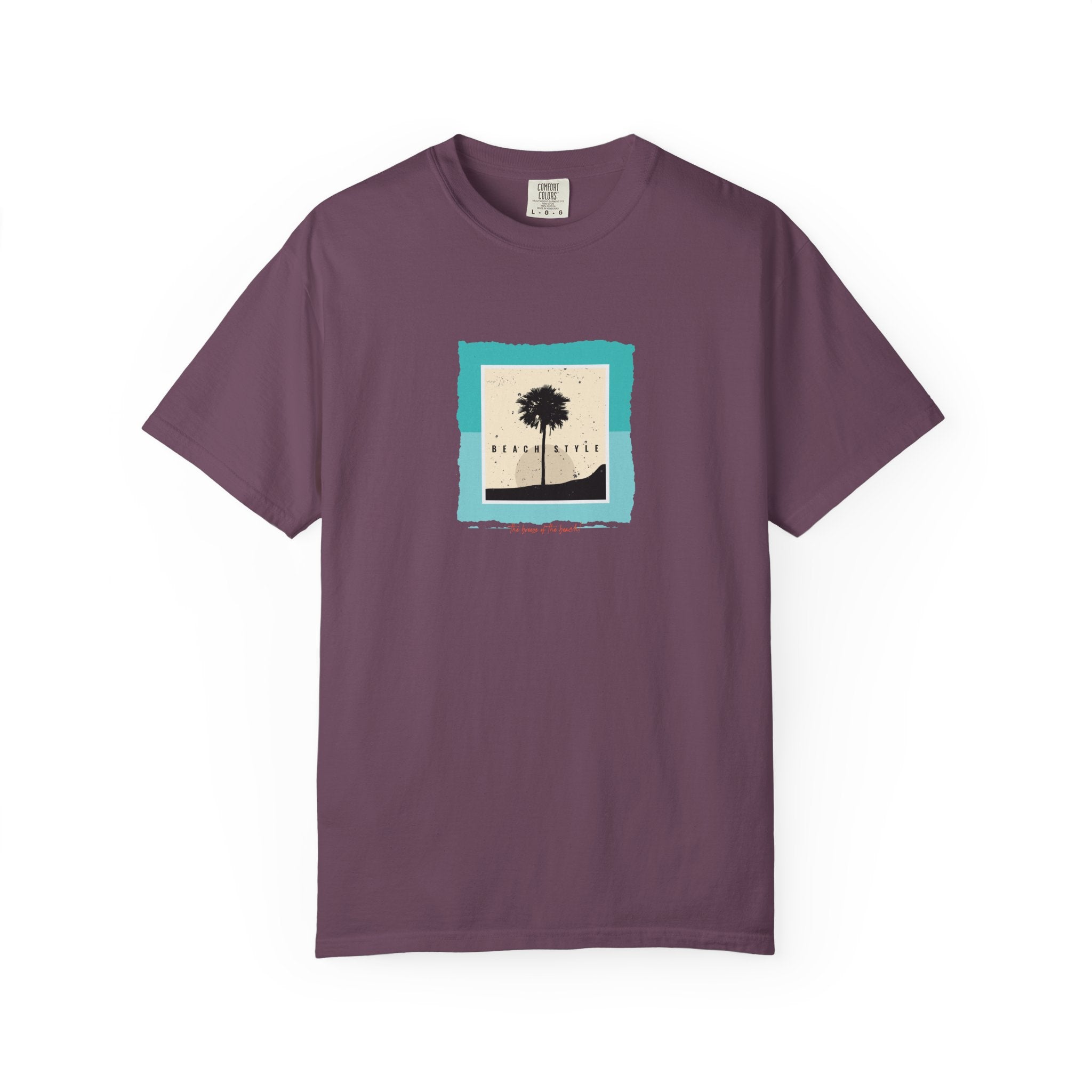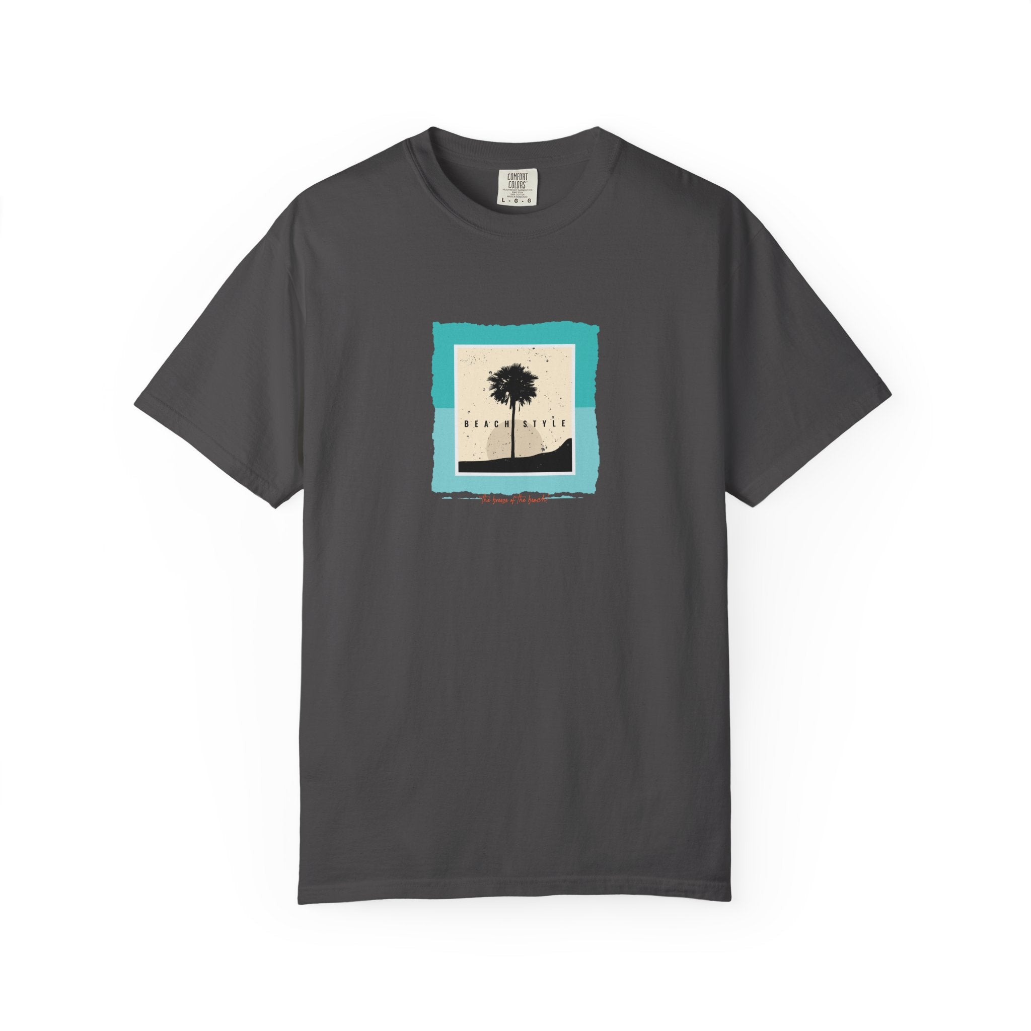 A soft, garment-dyed cotton tee that feels like an old favorite from the first wear. The relaxed fit and medium-weight fabric drape easily over the body, while the small, framed palm-tree print on the chest adds a quiet, beachside mood—sun-bleached and a little nostalgic. Wear it on slow mornings, weekend drives, or packed-lunch afternoons when you want something simple, comfortable, and quietly expressive. The sewn-in label and double-needle stitching mean this shirt will hold its shape and color after many washes. Comes in a wide range of colors and sizes so you can pick the shade that matches your summer playlist or sunset habit.