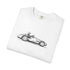 A vintage-inspired t-shirt featuring a classic race car illustration with clean minimalist lines.