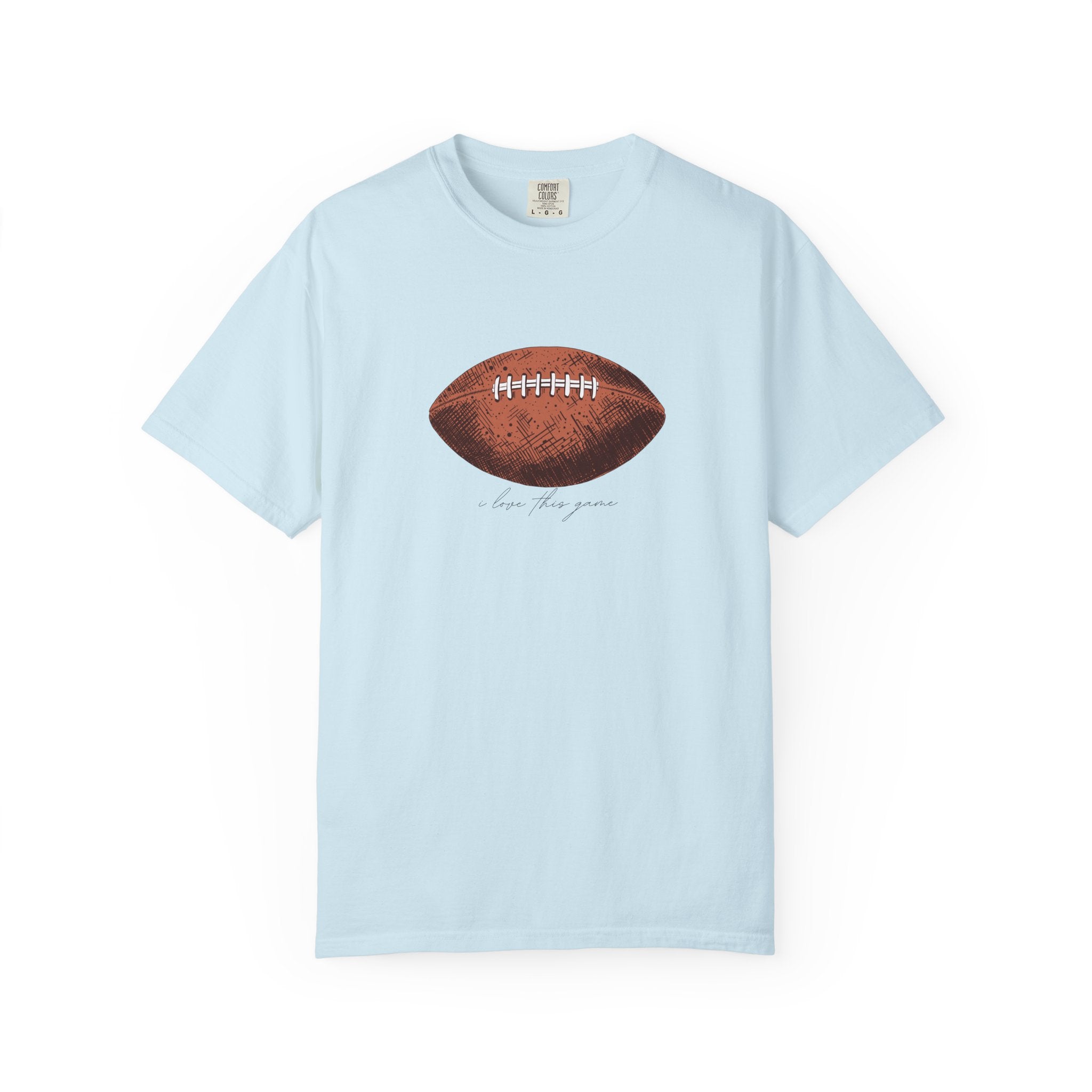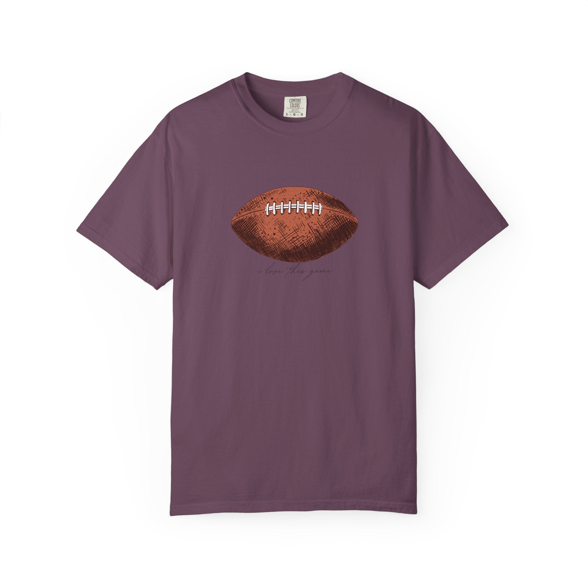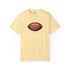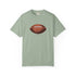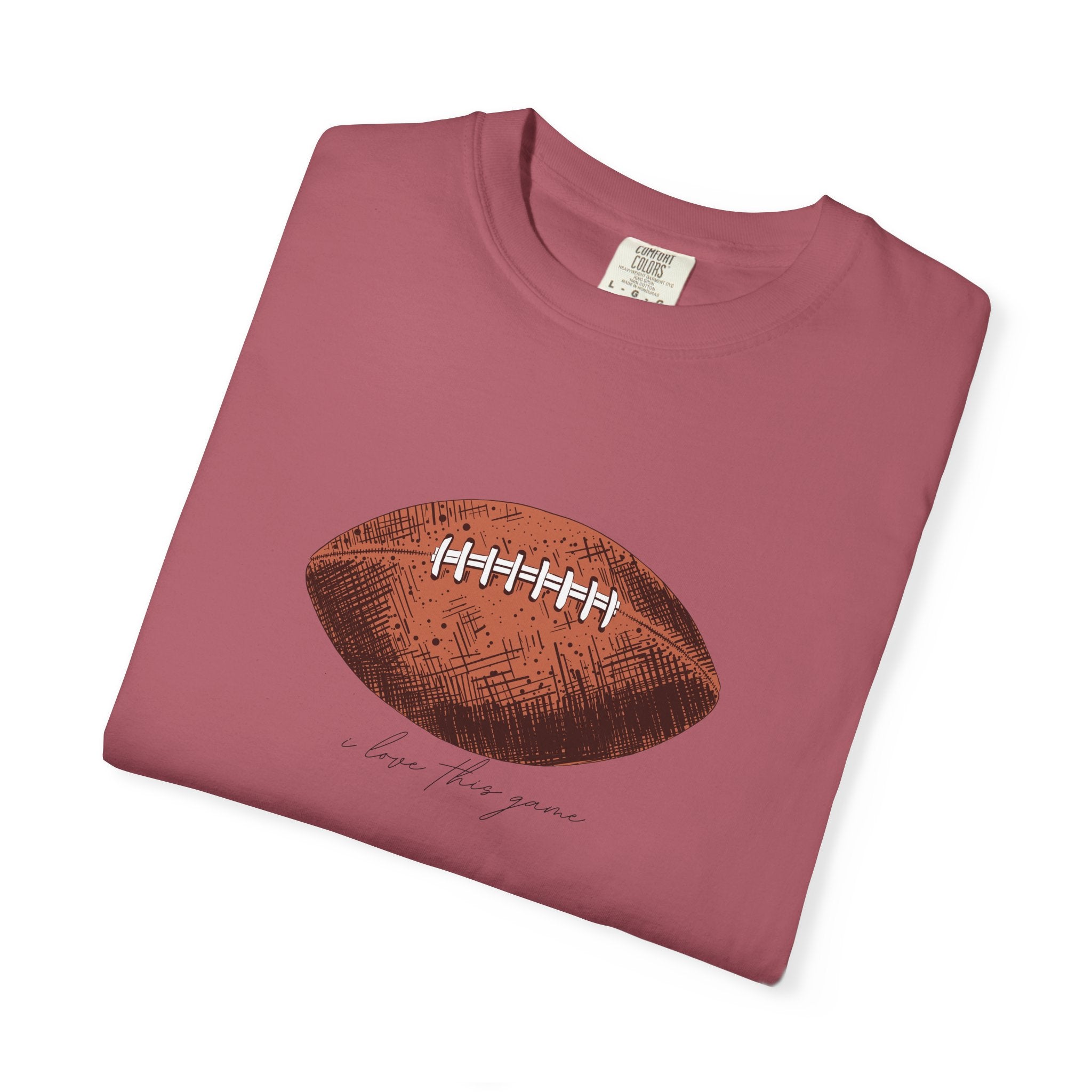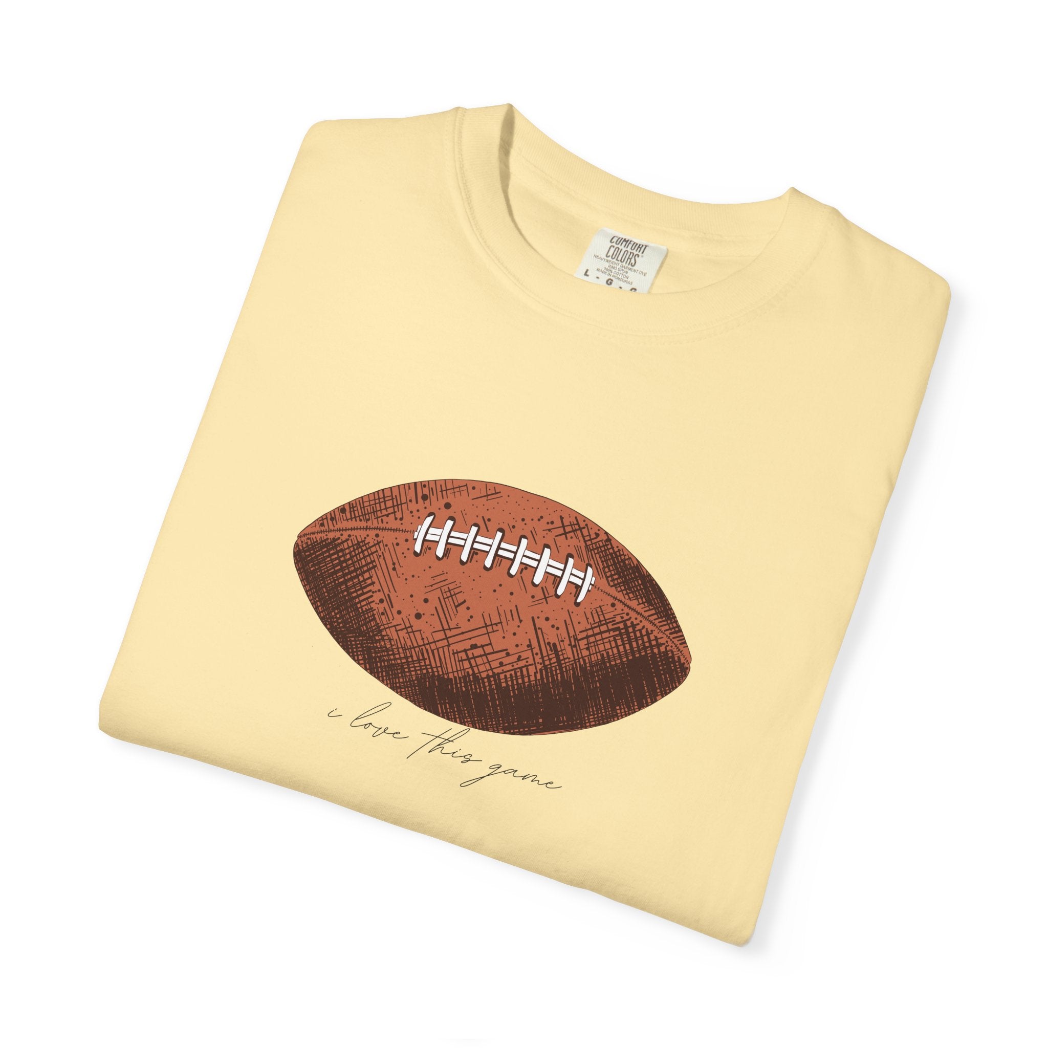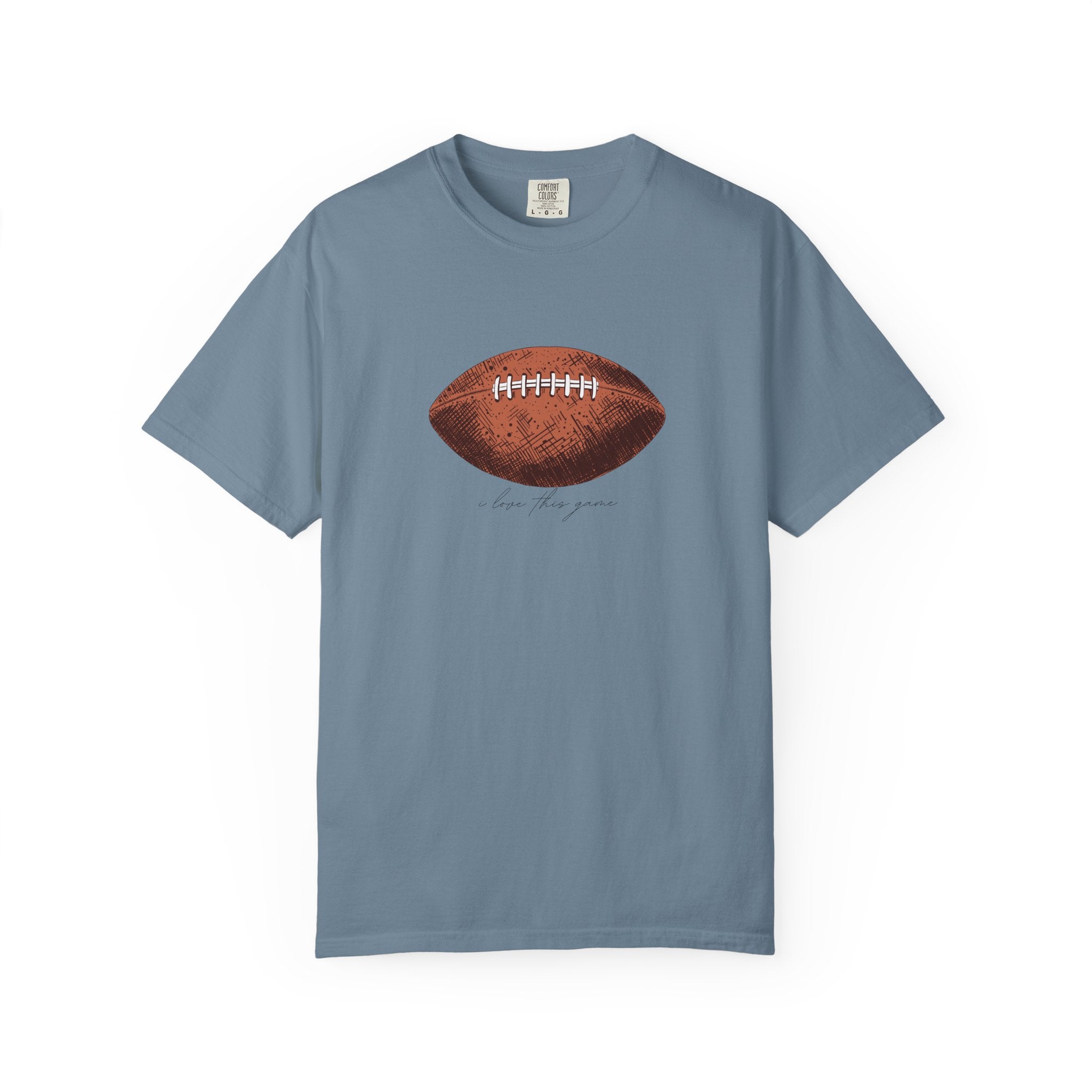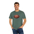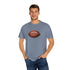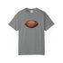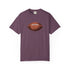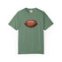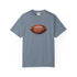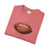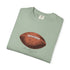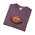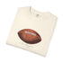 A relaxed, garment-dyed cotton T-shirt featuring a finely detailed vintage football print across the chest. The soft, slightly broken-in feel of the fabric comes from post-construction dyeing, giving the shirt a lived-in look that complements the nostalgic sports illustration. Lightweight but substantial, it drapes casually and keeps its shape thanks to double-needle stitching and tubular knit construction. Wear it to tailgates, weekend pickup games, or lazy Sundays on the couch — it reads like a quiet nod to afternoons spent on the field and memories of close plays and half-time conversations.